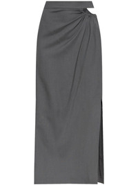 Navona midi skirt Highlights - Slate grey - Concealed side-zip fastening - Side slit - Draped design - Knotted accent - High waist - Tailored silhouette Made in Italy Composition Virgin Wool 71%, Mohair 18%, Silk 11% SIZE & FIT FittingInformation This maxi-length skirt is intended to be worn just below the waist Made from a midweight non-stretch fabric, this piece offers minimal elasticity when worn