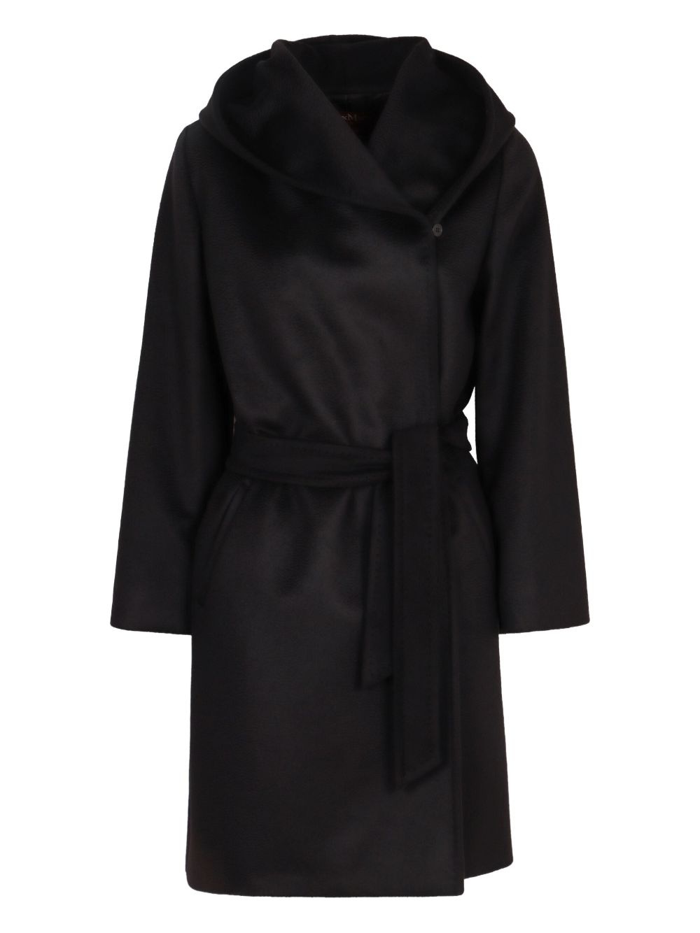 Newmang hooded belted coat Highlights - Black - Virgin wool - Hooded design - Belted waist - Single button fastening - Wrap-effect front Made in Italy Composition Virgin Wool 100% Washing instructions Read Manufacturer Guidelines