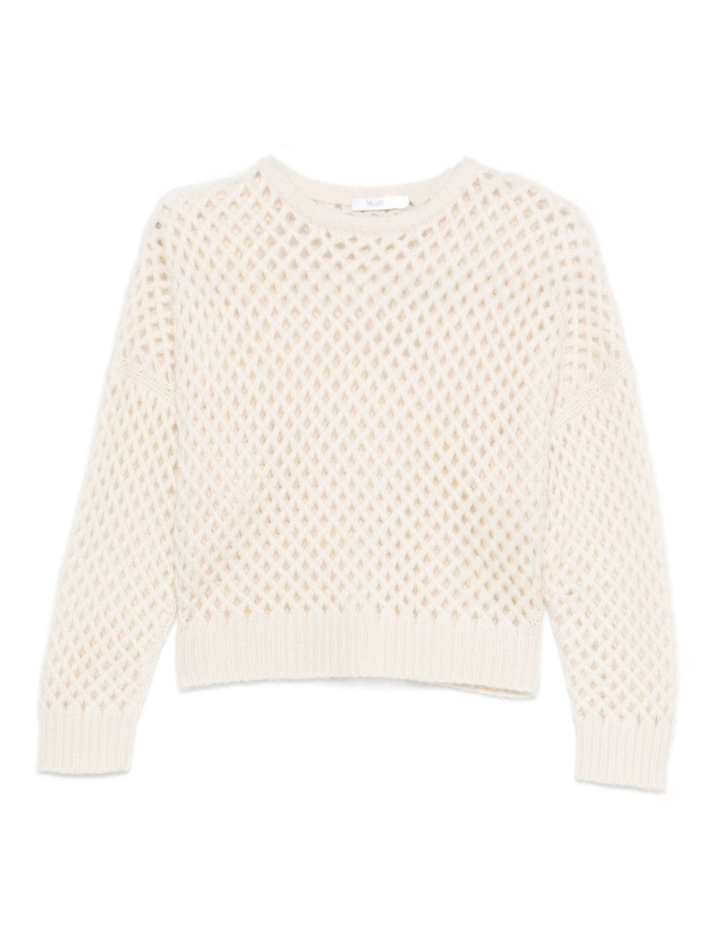 open-knit long-sleeve sweater Highlights - Off-white - Mesh knit - Round neck - Long sleeves - Cropped length - Open-knit pattern Imported Composition Cashmere 75%, Silk 25% SIZE & FIT Model measurements Height 5 ft 9 in(1.75 m) Bust/Chest 34.64 in(88 cm) Hips 36.61 in(93 cm) Waist 26.37 in(67 cm) Washing instructions Read Manufacturer Guidelines