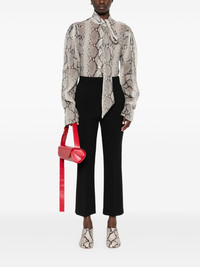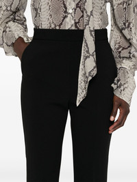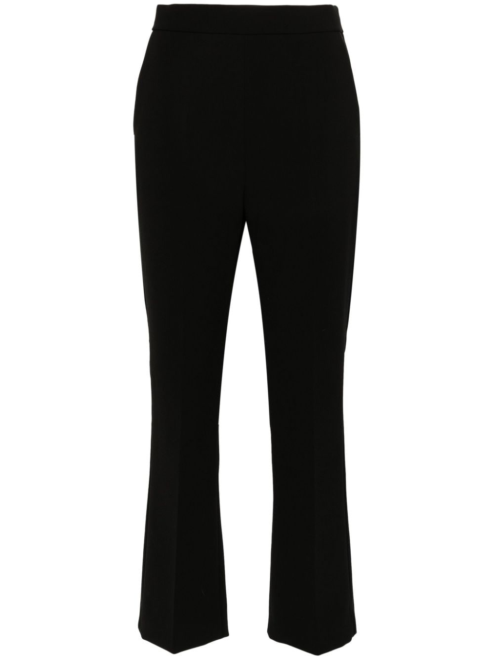 Parata high-waist bootcut trousers Highlights - Black - Stretch-design - Crepe texture - High-waisted - Two side slash pockets - Pressed crease - Bootcut - Concealed side zip fastening Made in Italy Composition Polyester 89%, Spandex/Elastane 11% SIZE & FIT Model measurements Height 5 ft 10 in(1.77 m) Bust/Chest 32.28 in(82 cm) Hips 35.03 in(89 cm) Waist 25.19 in(64 cm) FittingInformation Designed with a flared hem, these trousers allow for a close fit at the waist with a slim fit over the leg and widening towards the hem Cropped in length Made from a midweight stretch fabric, this piece offers elasticity and flexibility when worn This piece fits true to size – take your usual size