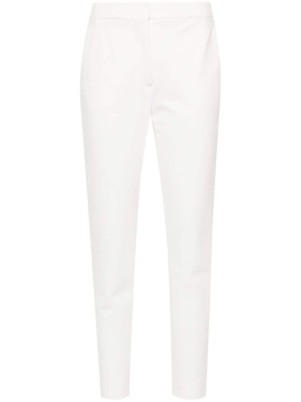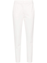 Pegno trousers Highlights - White - Stretch-design - Jersey texture - Concealed front button, hook and zip fastening - Two diagonal pockets to the sides - Pressed crease - Tapered leg Made in Italy Composition Viscose 84%, Polyamide 11%, Spandex/Elastane 5% SIZE & FIT Model measurements Height 5 ft 10 in(1.78 m) Bust/Chest 32.67 in(83 cm) Hips 35.43 in(90 cm) Waist 23.22 in(59 cm) FittingInformation Designed for a slim fit, these trousers offer a close fit at the waist, allowing a comfortable close fit and some movement over the leg Cropped in length Made from a midweight stretch fabric, this piece offers elasticity and flexibility when worn This piece fits true to size – take your usual size