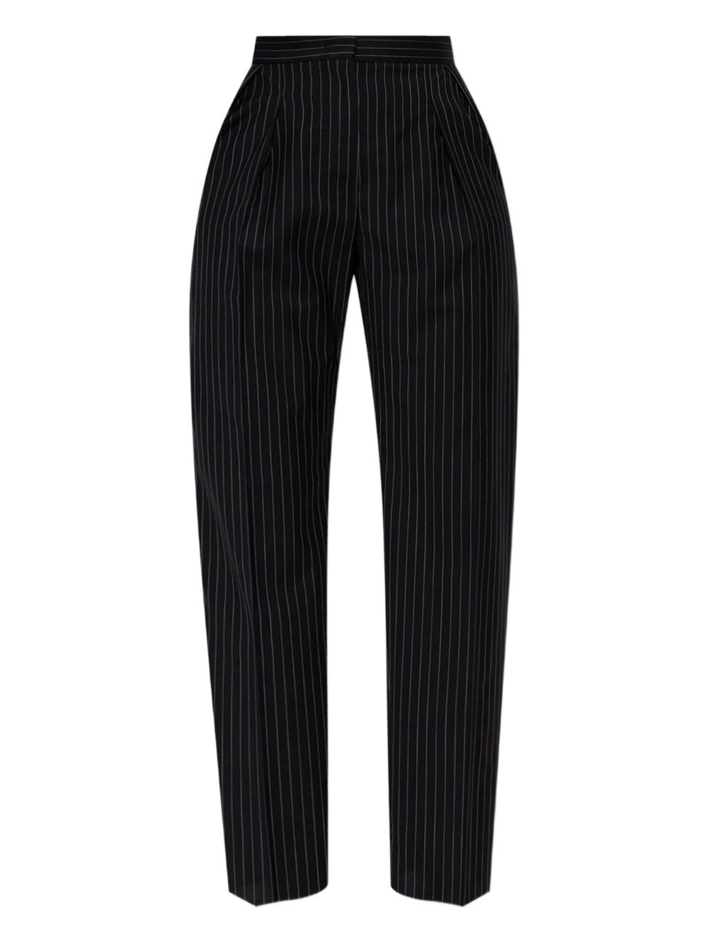 pinstripe wool pants Highlights - Black - Vertical pinstripe pattern - Pleated front detailing - Tapered leg - Concealed fastening - Side pockets Made in Italy Composition Virgin Wool 100% Washing instructions Read Manufacturer Guidelines