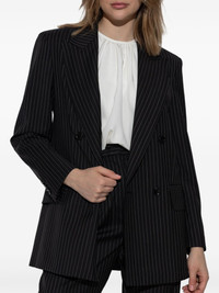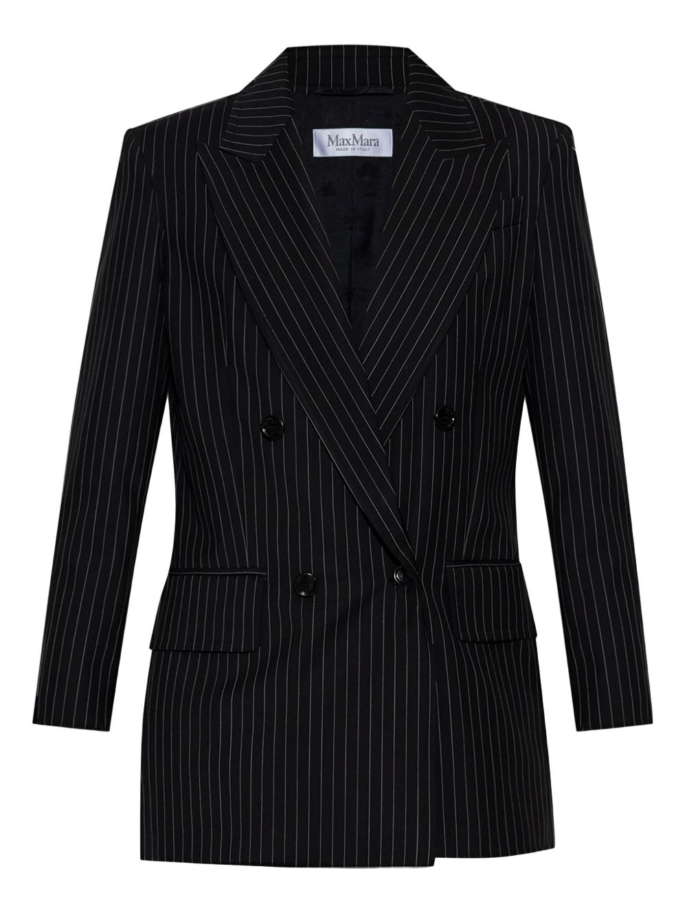 pinstriped double-breasted blazer Highlights - Black - White pinstripe pattern - Peak lapels - Double-breasted front - Padded shoulders - Side pockets Made in Italy Composition Outer: Virgin Wool 100% Lining: Acetate 65%, Polyester 35% Washing instructions Read Manufacturer Guidelines