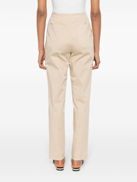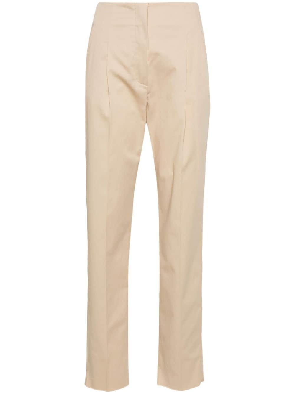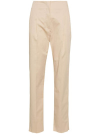 pleat-detailing trousers Highlights - Ecru - Cotton blend - Gabardine weave - Two diagonal pockets to the sides - Pleat detailing - Pressed crease - Two rear patch pockets - Mini logo tag - Straight leg - Concealed front press-stud and zip fastening Made in Italy Composition Cotton 95%, Silk 3%, Elastane 2% SIZE & FIT Model measurements Height 5 ft 10 in(1.77 m) Bust/Chest 33.07 in(84 cm) Hips 37 in(94 cm) Waist 24.8 in(63 cm) FittingInformation Designed for a tapered fit, these trousers allow for a close fit at the waist and a loose unrestricted fit over the leg with a closer fit towards the ankle The unfinished hems allow for the length to be altered Made from a midweight stretch fabric, this piece offers elasticity and flexibility when worn This piece fits true to size – take your usual size