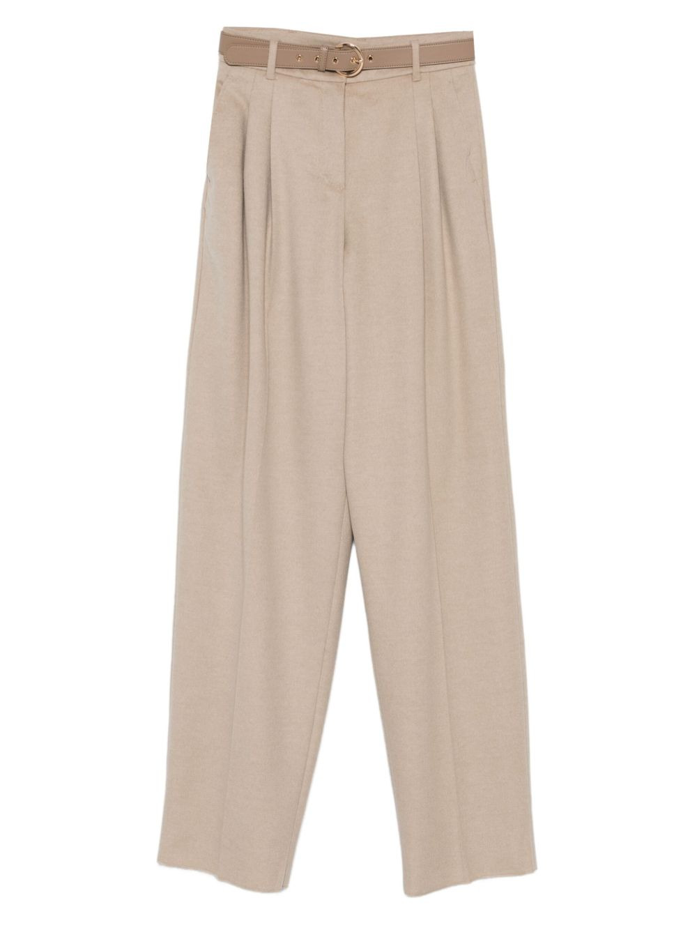 pleated belted trousers Highlights - Beige - Pleated front - Belt included Imported Composition Virgin Wool 100% SIZE & FIT Model measurements Height 5 ft 11 in(1.8 m) Bust/Chest 31.49 in(80 cm) Hips 36.61 in(93 cm) Waist 24.4 in(62 cm) Washing instructions Read Manufacturer Guidelines