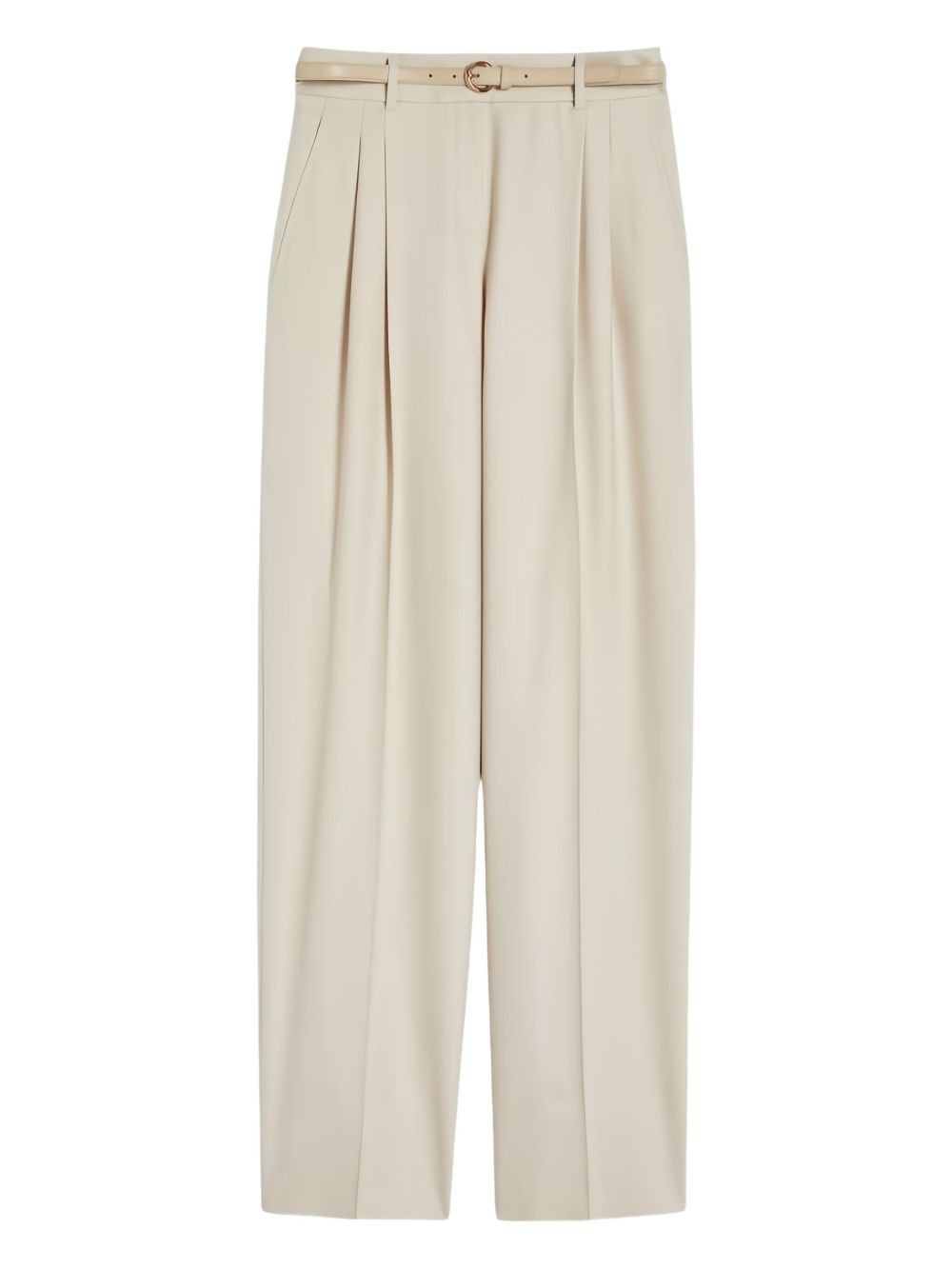 pleated-front belted trousers Highlights - Beige - Virgin wool-blend - Pleated front - Belt loops - Matching belt - Slash pockets Made in Italy Composition Virgin Wool 97%, Elastane 3% Washing instructions Read Manufacturer Guidelines