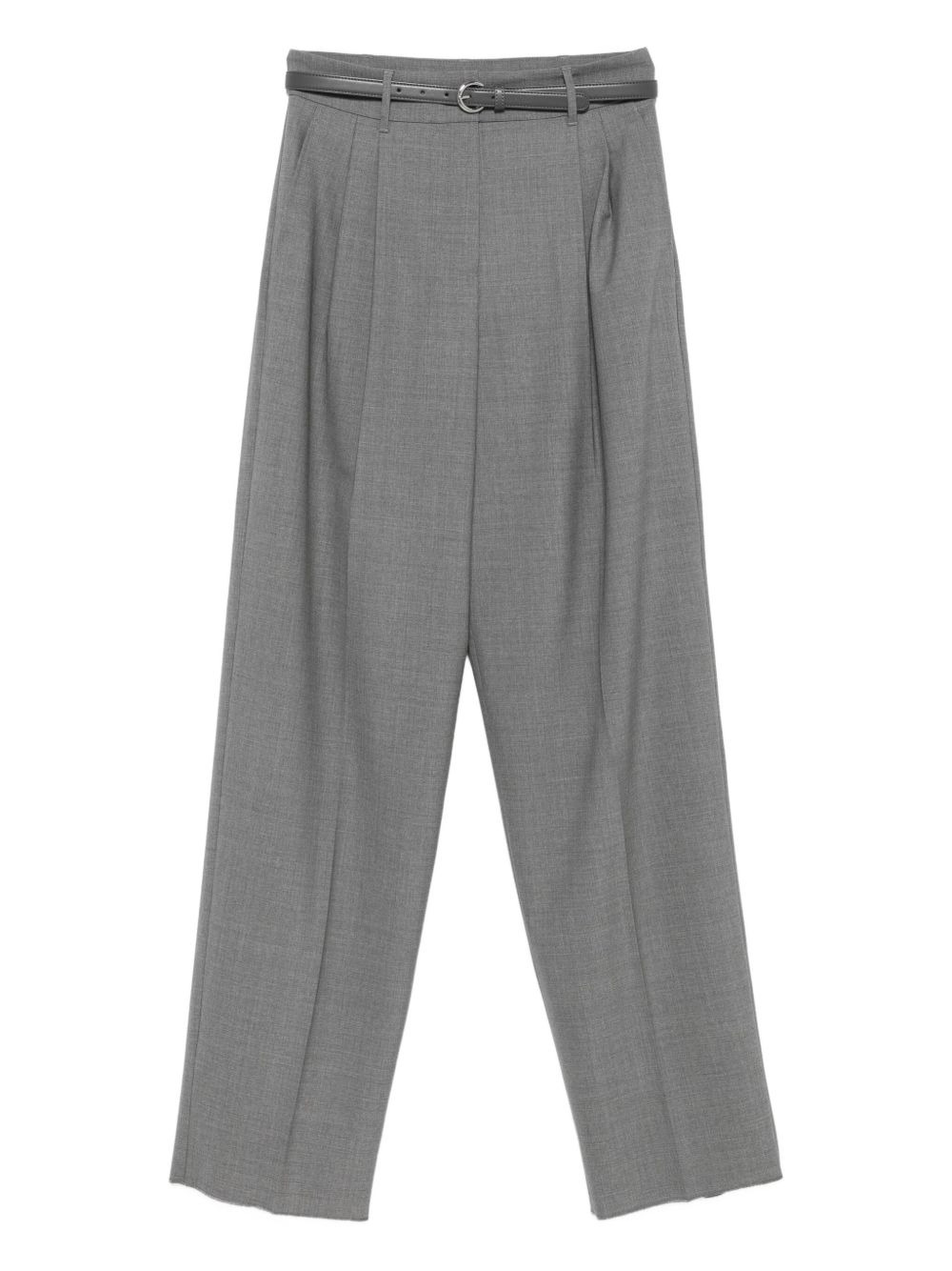 pleated-front belted trousers Highlights - Grey - Pleated front - Belt embellishment - Front pockets - Wool fabric Made in Italy Composition Virgin Wool 97%, Elastane 3% SIZE & FIT Model measurements Height 5 ft 10 in(1.77 m) Bust/Chest 33.07 in(84 cm) Hips 37 in(94 cm) Waist 24.8 in(63 cm) Washing instructions Dry Clean Only