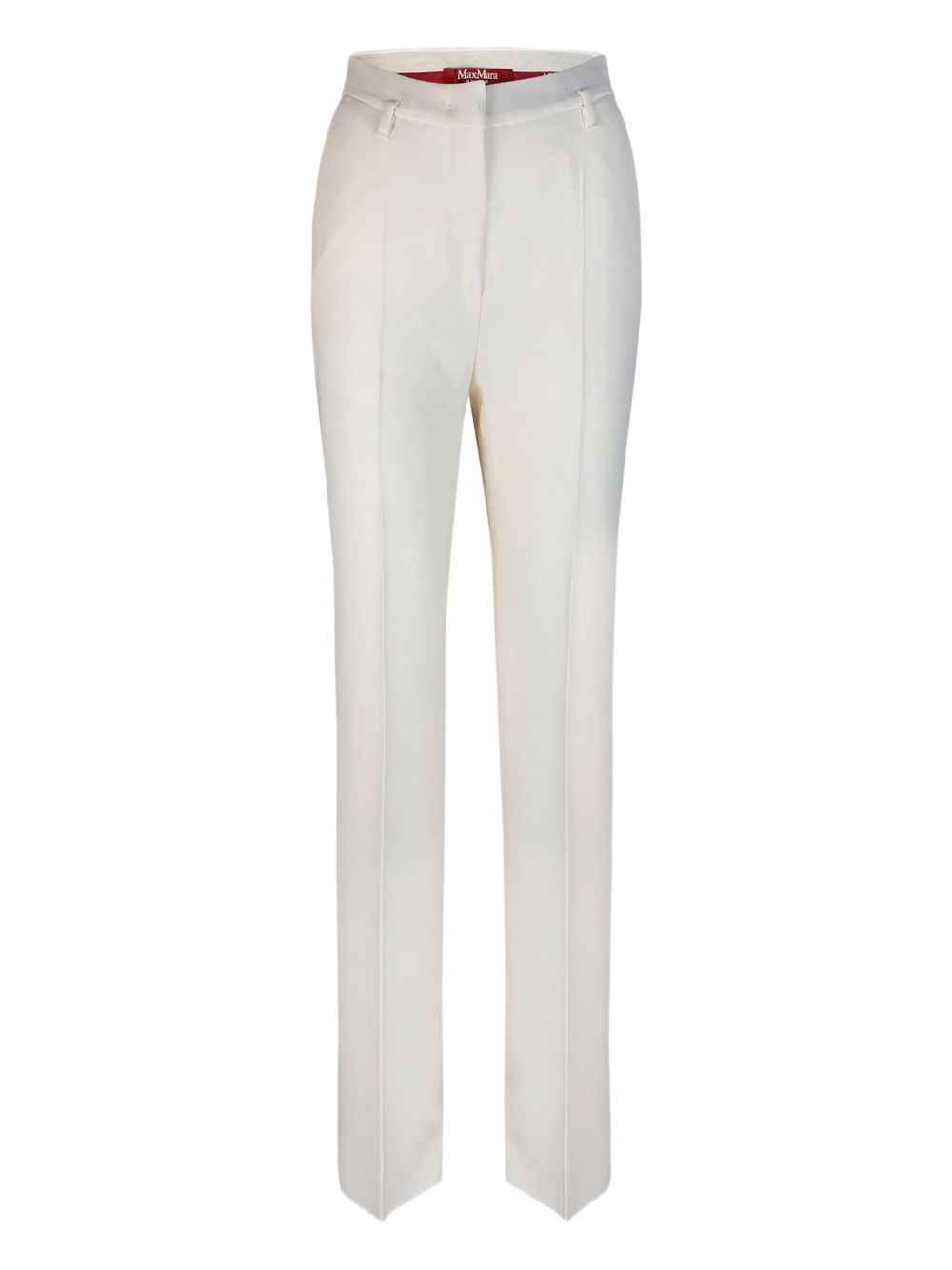 pleated-front trousers Highlights - Off-white - Pleated front - Hook-and-bar fastening - Front pockets - Buttoned back pockets Imported Composition Triacetate 71%, Polyester 29% Washing instructions Read Manufacturer Guidelines