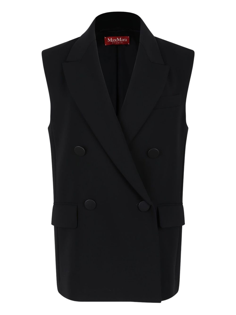 Pomez double-breasted waistcoat Highlights - Black - Double-breasted button fastening - Peak lapels - Side flap pockets - Rear vent Imported Composition Triacetate 71%, Polyester 29% Washing instructions Read Manufacturer Guidelines