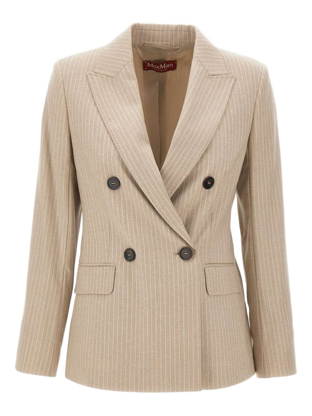 Pucci pinstripe double-breasted blazer Highlights - Beige - Pinstripe pattern - Peak lapels - Double-breasted - Side flap pockets - Buttoned cuffs Imported Composition Outer: Wool 99%, Lycra 1% Lining: Bio Acetate 70%, Polyester 30% Washing instructions Read Manufacturer Guidelines
