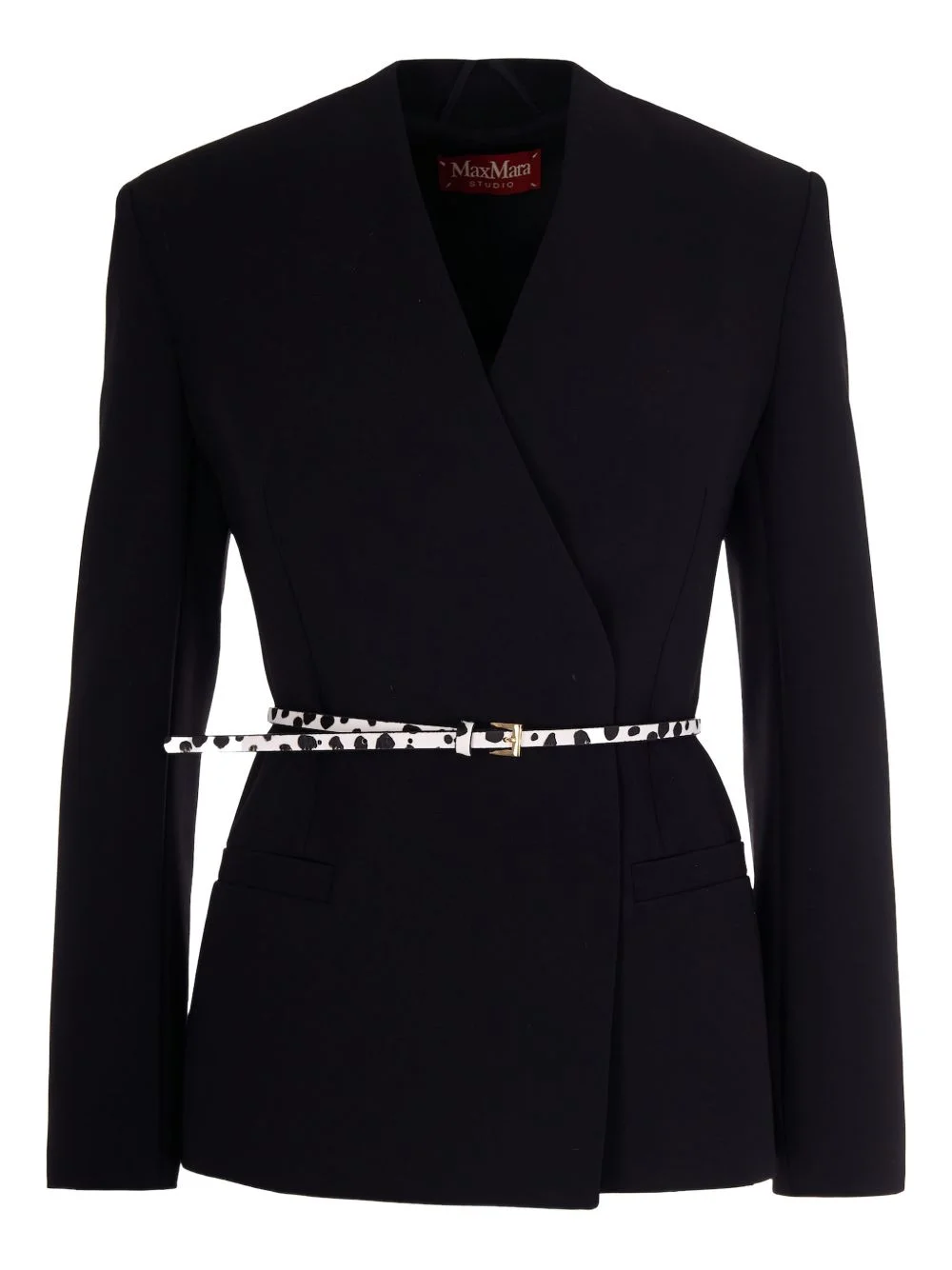 Quinoa belted jacket Highlights - Black - Patterned belt - Front pockets - V-neck - Long sleeves - Wrap style Imported Composition Triacetate 71%, Polyester 29% Washing instructions Read Manufacturer Guidelines