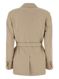 Randers blazer Highlights - Beige - Concealed front fastening - Belted waist - Two side flap pockets - American rear vent Imported Composition Outer: Virgin Wool 55%, Silk 30%, Cashmere 15% Lining: Acetate 65%, Polyester 35% SIZE & FIT Measurement SLEEVE LENGTH 24.01 in(61 cm) LENGTH 29.92 in(76 cm) WAIST 44.88 in(114 cm)