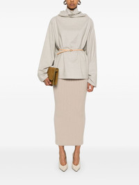 ribbed midi skirt Highlights - Beige - Wool-cashmere blend - Chunky ribbed knit - Ribbed waistband - Pencil silhouette - Straight hem - Mid-length Imported Composition Wool 65%, Cashmere 28%, Polyamide 6%, Elastane 1% Washing instructions Hand Wash