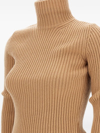 ribbed turtleneck sweater Highlights - Beige - Turtleneck neck - Ribbed knit - Long sleeves - Half-zip back Imported Composition Wool 62%, Cashmere 27%, Polyamide 10%, Spandex/Elastane 1% Washing instructions Read Manufacturer Guidelines