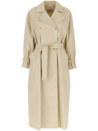 Ronco trench coat Highlights - Light beige - Double-breasted front - Belted waistline - Oversized lapels - Side pockets - Tabbed cuffs - Back vent - Tailored silhouette Made in Italy Composition Linen/Flax 100%