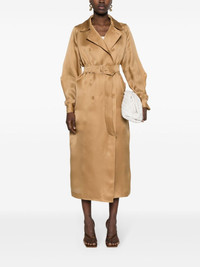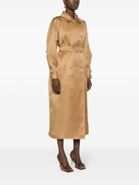 Sacco double-breasted trench coat Highlights - Camel brown - Silk - Organza - Satin finish - Tonal stitching - Spread collar - Long raglan sleeves - Belted cuffs - Two side inset pockets - Belt loops - Detachable and adjustable waist belt - Calf-length - Inverted pleat to the rear - Central rear vent - Straight hem - Unlined - Double-breasted button fastening Made in Italy Composition Silk 100% SIZE & FIT Model measurements Height 5 ft 11 in(1.8 m) Bust/Chest 32.67 in(83 cm) Hips 36.22 in(92 cm) Waist 24.4 in(62 cm) FittingInformation Designed to be unstructured, offering a loose fit throughout The belt offers adjustability for fitted preferences Made from a lightweight non-stretch fabric This piece fits true to size – take your usual size