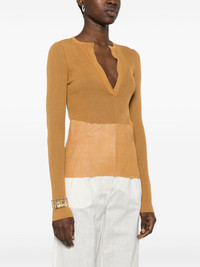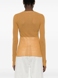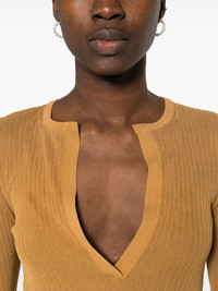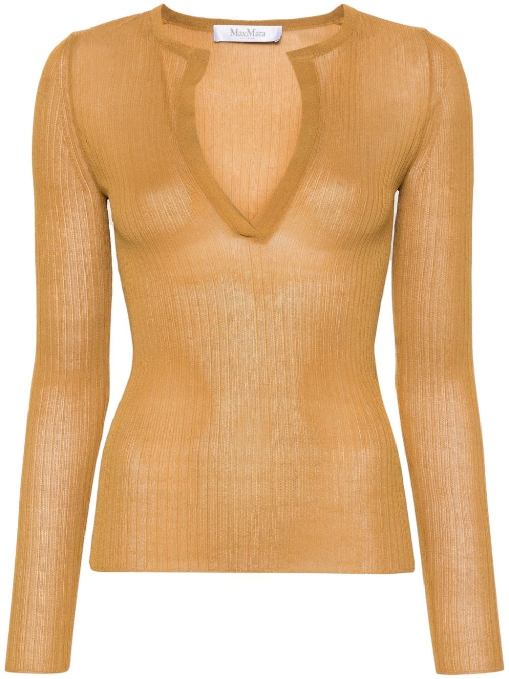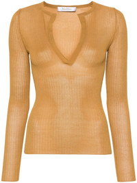 Saggina ribbed silk jumper Highlights - Camel brown - Silk - Ribbed knit - Semi-sheer construction - V-neck - Long sleeves - Straight hem Imported Composition Silk 100% SIZE & FIT Model measurements Height 5 ft 11 in(1.8 m) Bust/Chest 32.67 in(83 cm) Hips 36.22 in(92 cm) Waist 24.4 in(62 cm) FittingInformation Designed for a close fit throughout Made with a fine knit, this piece offers some stretch This piece fits true to size – take your usual size Washing instructions Hand Wash