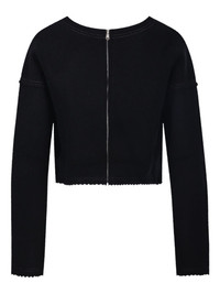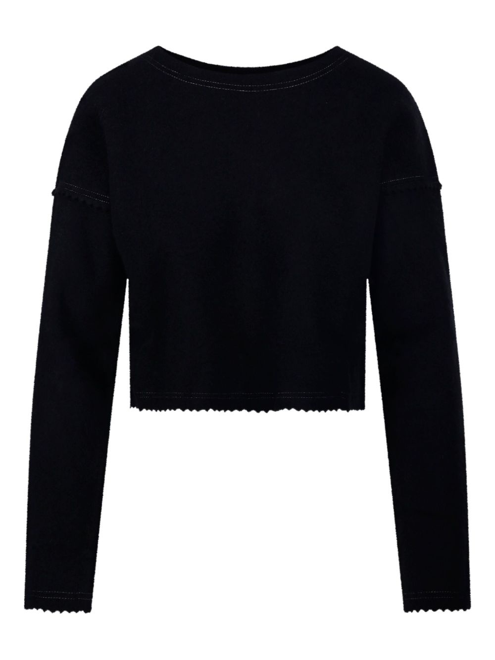scalloped-edge crop top Highlights - Black - Long sleeves - Round neckline - Scalloped hem - Contrasting stitching - Relaxed fit Made in Italy Composition Virgin Wool 70%, Cashmere 30% Washing instructions Read Manufacturer Guidelines