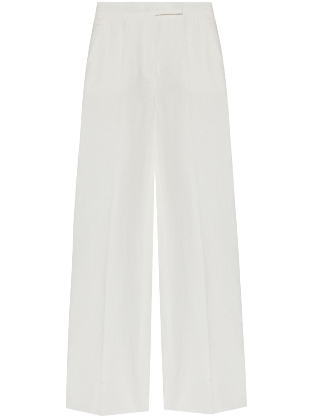 Sequoia trousers Highlights - White - Concealed front fastening - Two side inset pockets - Two rear welt pockets Made in Italy Composition Linen/Flax 100% SIZE & FIT FittingInformation Designed with a wide-leg cut, these trousers allow for a close fit at the waist and offer a loose and roomy fit over the leg The unfinished hems allow for the length to be altered Made from a midweight non-stretch fabric