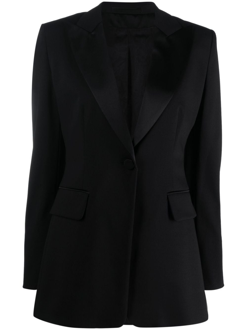 single-breasted wool-blend blazer Max Mara demonstrates its classic tailoring influences with this black blazer. Crafted in Italy from a wool and mohair blend, the elongated single-breasted silhouette is complete with peak lapels and flap pockets on the front. Highlights - Black - Wool blend - Peak lapels - Front button fastening - Long sleeves - Buttoned cuffs - Front flap pockets - English rear vents - Straight hem Made in Italy Composition Outer: Polyester 100%, Virgin Wool 78%, Mohair 20%, Elastane 2% Lining: Viscose 100% SIZE & FIT Model measurements Height 5 ft 10 in(1.78 m) Bust/Chest 33.07 in(84 cm) Hips 36.61 in(93 cm) Waist 24.8 in(63 cm) FittingInformation Designed for a slim fit that sits just away from the body offering a close yet comfortable fit The internal shoulder pads offer a structured shape Made from a midweight fabric This piece fits true to size – take your usual size
