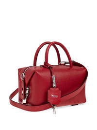 small leather handbag Highlights - Red - Top zip fastening - Two rolled top handles - Detachable shoulder strap - Main compartment Made in Italy Composition Outer: Calf Leather 100% Lining: Goat Skin 100% SIZE & FIT Measurement DEPTH 3.54 in(9 cm) HEIGHT 3.93 in(10 cm) WIDTH 6.88 in(17.5 cm)