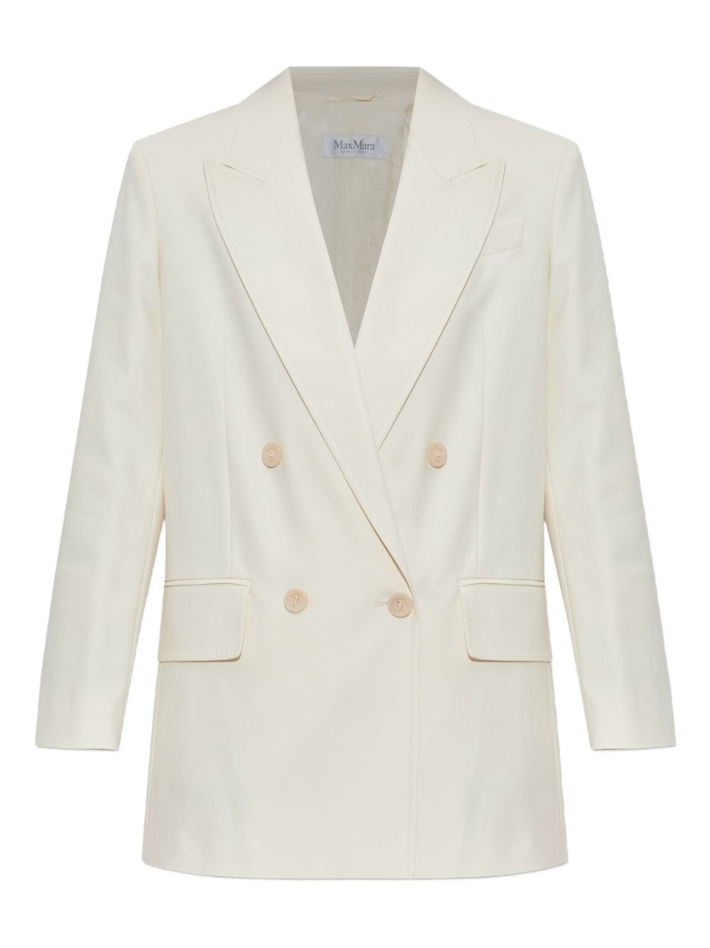 Olimpia double-breasted blazer Highlights - Ecru - Double-breasted button fastening - Notched lapels - Long sleeves - Front flap pockets - Italian rear vents Made in Italy Composition Cotton 95%, Elastane 5% Washing instructions Read Manufacturer Guidelines