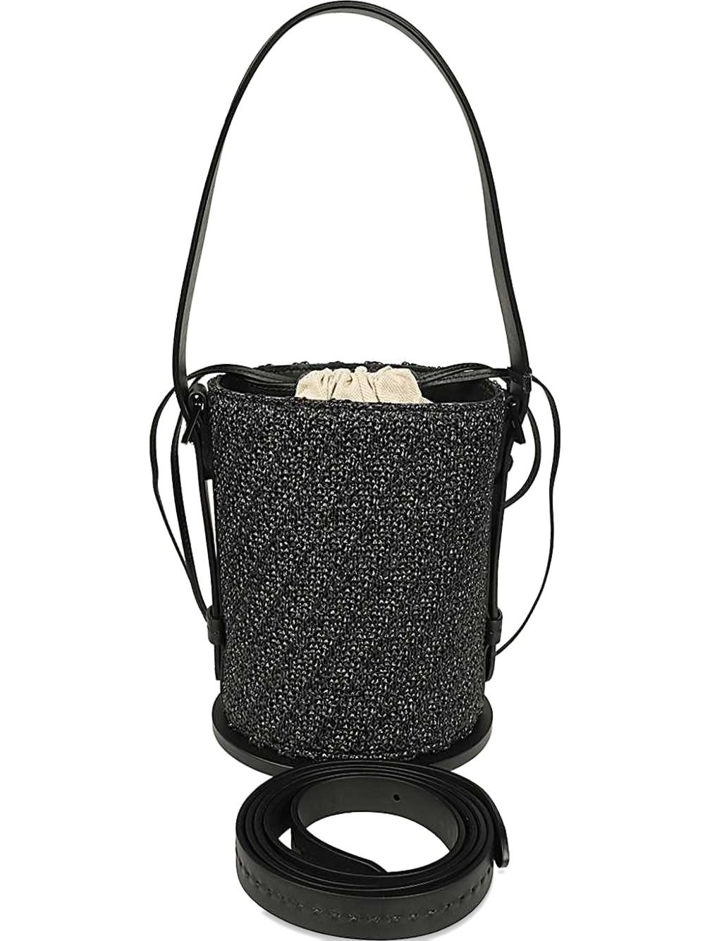 textured drawstring bucket bag Highlights - Black - Textured weave - Drawstring closure - Detachable adjustable shoulder strap - Metal logo - Dark-tone metal hardware Made in Italy Composition Lining: Fabric 100% Outer: Polyamide 100% SIZE & FIT Measurement DEPTH 5.51 in(14 cm) HEIGHT 9.44 in(24 cm) WIDTH 6.1 in(15.5 cm)