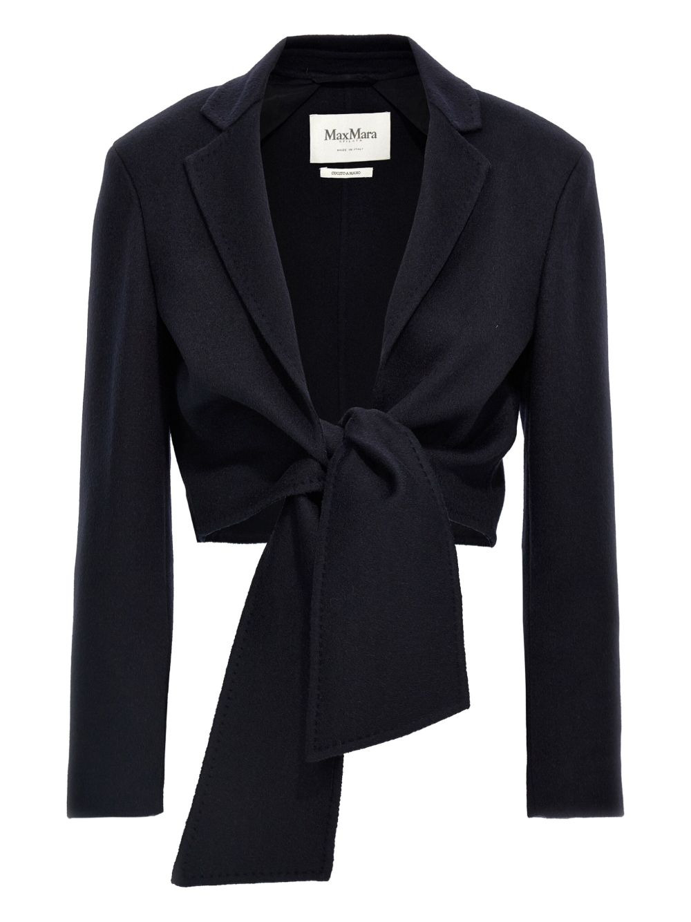 tie-front notched-lapel jacket Highlights - Navy blue - Notched lapels - Tie fastening - Long sleeves - Buttoned cuffs Made in Italy Composition Camel Hair 100% Washing instructions Read Manufacturer Guidelines