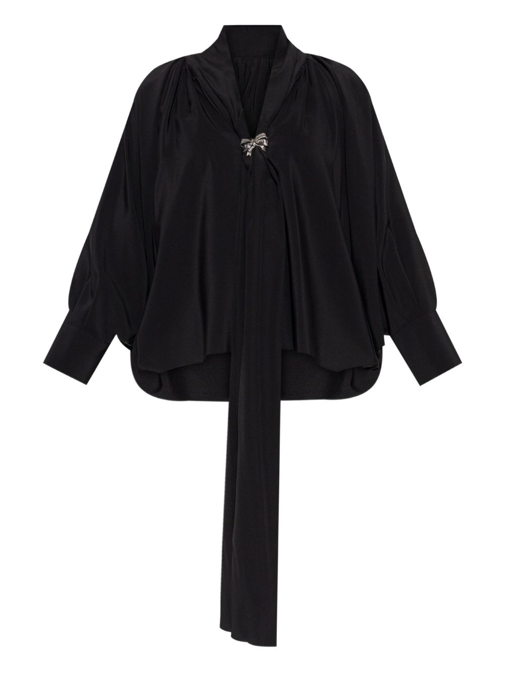 tie-front silk blouse Highlights - Black - Draped design - Long puff sleeves - Silver-tone embellishment - V-neck - Curved hem Made in Italy Composition Silk 100%