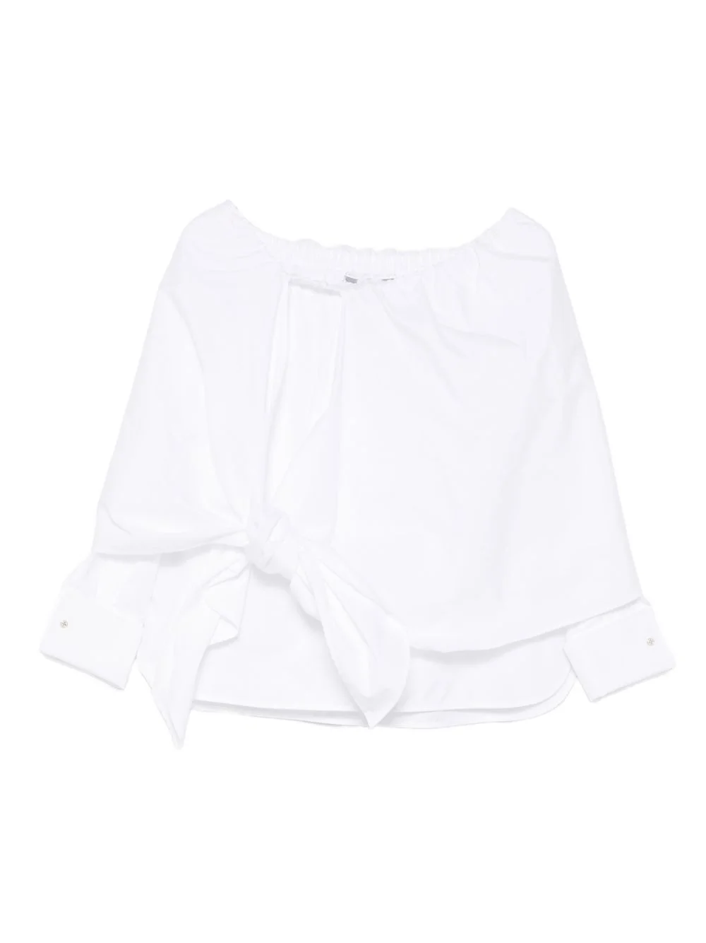 tie layered cotton shirt Highlights - White - Optical white - Tie detail - Cuff sleeves - Gathered neckline - Buttoned cuffs - Layered effect - Cotton Made in Italy Composition Cotton 100% SIZE & FIT Model measurements Height 5 ft 9 in(1.76 m) Bust/Chest 33.85 in(86 cm) Hips 35.43 in(90 cm) Waist 25.59 in(65 cm) Washing instructions Machine Wash