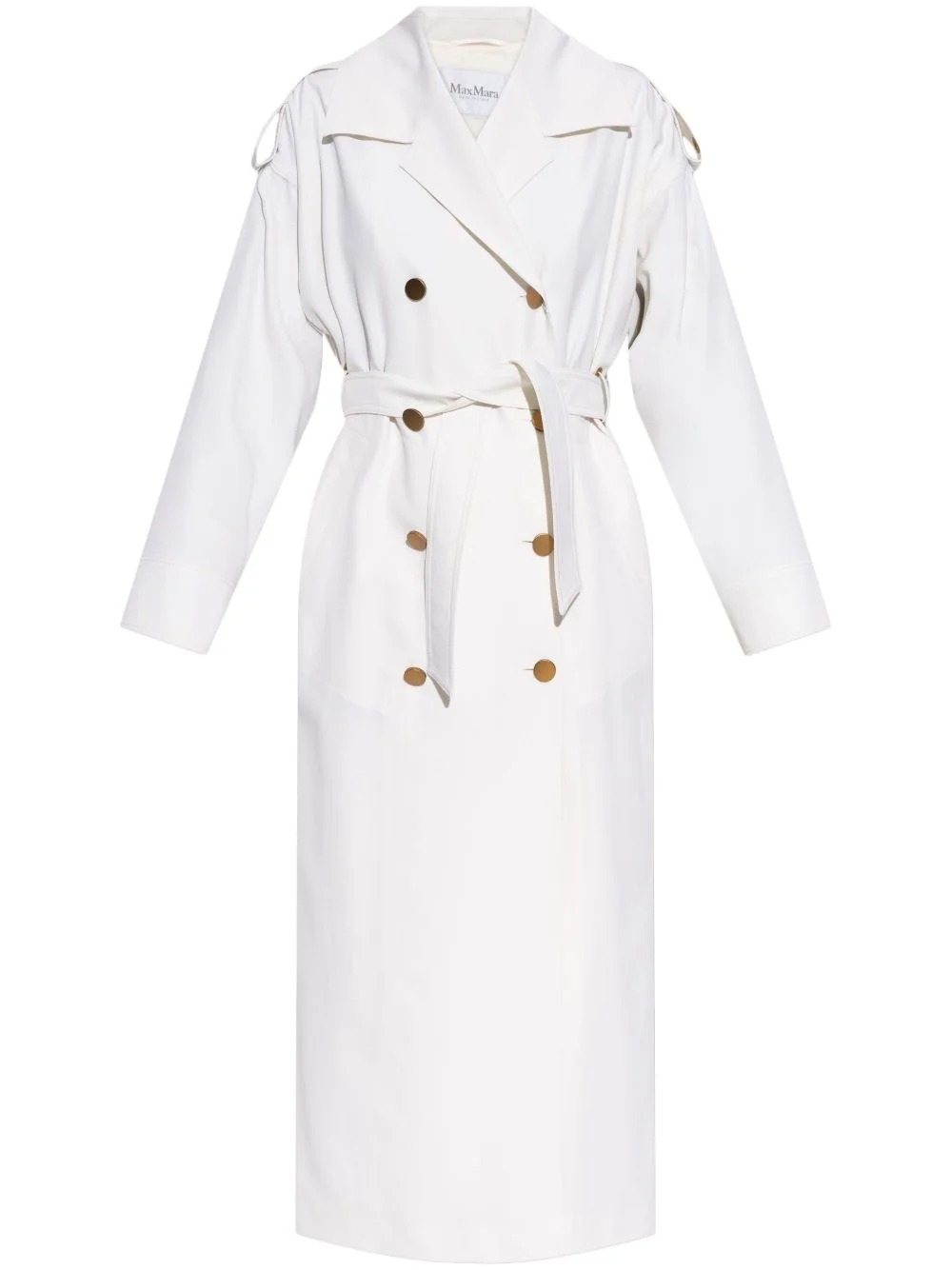 Tirana coat Highlights - Bright white - Structured silhouette - Shoulder epaulettes - Gold-tone button details - Self-tie belt - Long sleeves Made in Italy Composition Virgin Wool 100% Washing instructions Read Manufacturer Guidelines