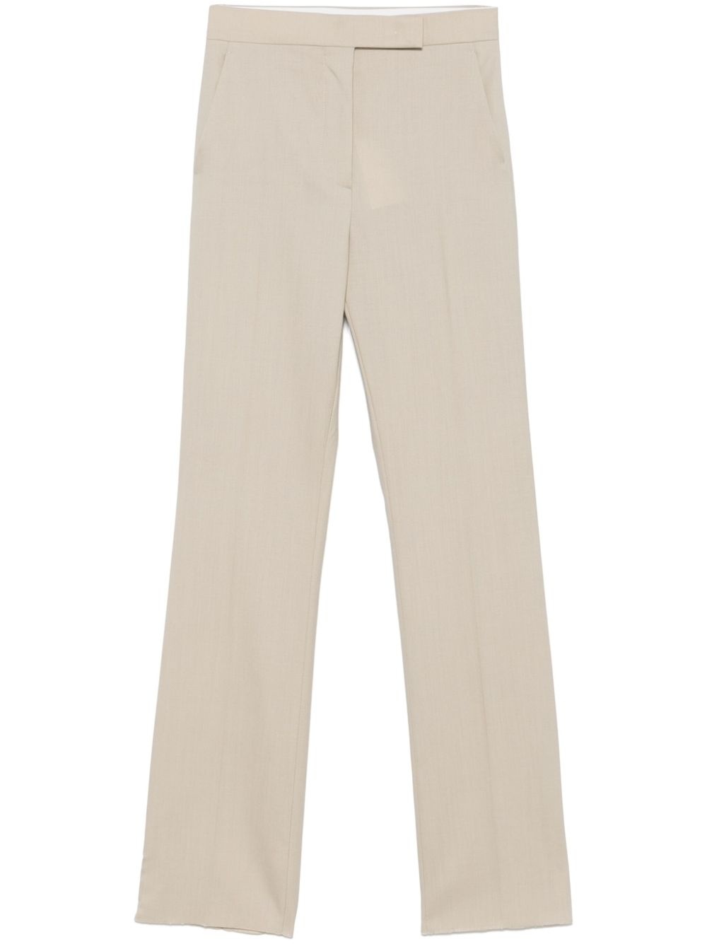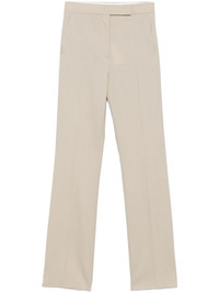 Turbigo trousers Highlights - Sand beige - Concealed front button, hook and zip fastening - Two diagonal pockets to the sides - Two rear welt pockets - Pressed crease Made in Italy Composition Virgin Wool 71%, Mohair 18%, Silk 11% SIZE & FIT Model measurements Height 5 ft 9 in(1.76 m) Bust/Chest 31.1 in(79 cm) Hips 36.61 in(93 cm) Waist 24.8 in(63 cm) FittingInformation Designed for a straight-leg fit, these trousers allow for a close fit at the waist and an unrestricted, comfortable fit over the leg Made from a midweight non-stretch fabric
