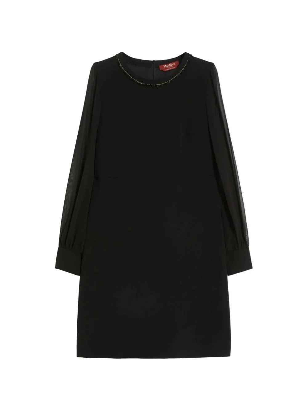 Volto beaded-neck sheer-sleeve dress Highlights - Black - Beaded neckline - Sheer sleeves - Shirt cuffs - Jewel buttons - Back zip fastening Imported Composition Triacetate 71%, Polyester 29% Washing instructions Specialist Cleaning