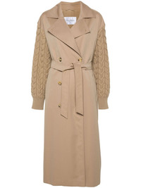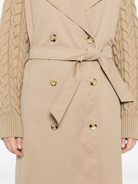 water-repellent gabardine trench coat Highlights - Light brown - Gabardine weave - Panelled design - Virgin wool knitted panels - Notched lapels - Long sleeves - Ribbed cuffs - Belted waist - Two side welt pockets - Storm flap - Central rear vent - Full lining - Straight hem - Double-breasted button fastening Made in Italy Composition Lining: Viscose 52%, Cotton 48% Outer: Virgin Wool 100% SIZE & FIT Model measurements Height 5 ft 10 in(1.77 m) Bust/Chest 33.85 in(86 cm) Hips 37 in(94 cm) Waist 26.37 in(67 cm) FittingInformation Designed to be unstructured, offering a loose fit throughout The tie fastening gives an adaptable and personalised fit Made from a midweight non-stretch fabric This piece fits true to size – take your usual size Washing instructions Dry Clean Only