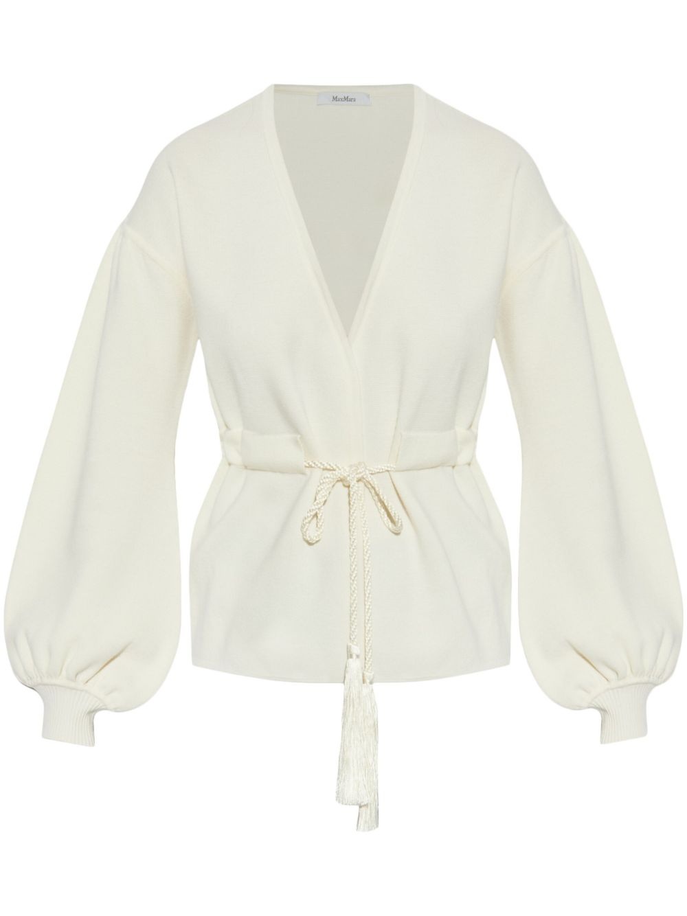 wool blouse Highlights - White - Front tie fastening - V-neck - Long puff sleeves - Straight hem Made in Italy Composition Wool 100%