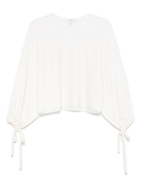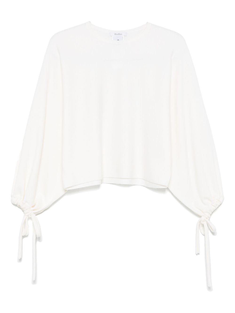 wool blouse Highlights - Light beige - Round neck - Drop shoulder - Long sleeves - Tied cuffs Imported Composition Virgin Wool 100% SIZE & FIT Model measurements Height 5 ft 9 in(1.75 m) Bust/Chest 32.67 in(83 cm) Hips 36.22 in(92 cm) Waist 24.8 in(63 cm) FittingInformation Designed to be unstructured, offering a loose fit throughout The adjustable drawstring means that you can adjust this piece’s fit to suit your comfort and preference Made with a midweight knit, this piece offers some stretch Washing instructions Hand Wash