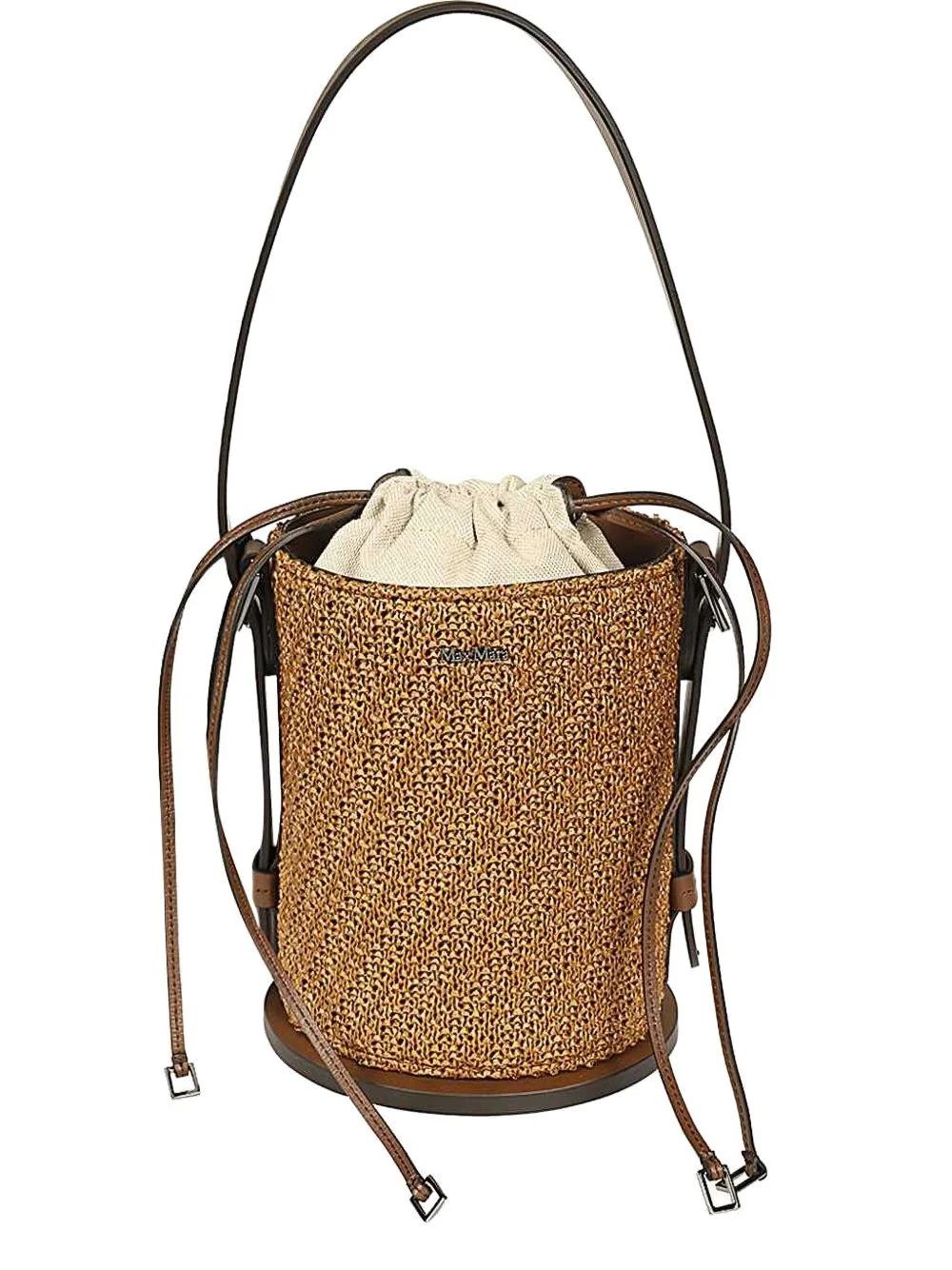 woven bucket bag Highlights - Brown - Woven texture - Drawstring closure - Top handle - Adjustable shoulder strap - Logo plaque detail Made in Italy Composition Outer: Polyamide 100%, Leather 100% SIZE & FIT Measurement DEPTH 4.72 in(12 cm) HEIGHT 7.87 in(20 cm) WIDTH 6.29 in(16 cm)