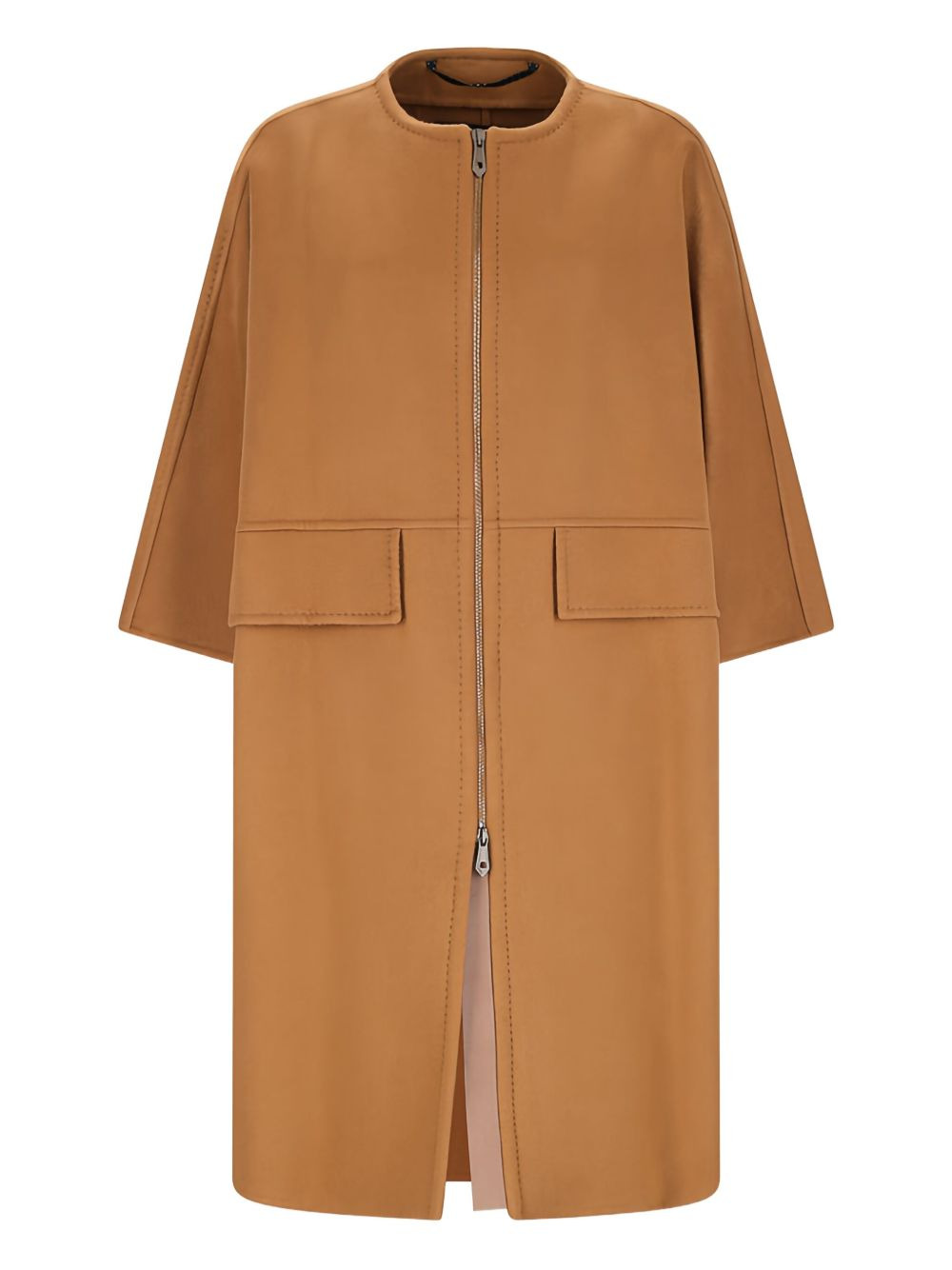 Zahira zip-fastening coat Highlights - Light brown - Zip fastening - Round neck - Short sleeves - Front pockets - Straight hem Imported Composition Fabric 100% Washing instructions Read Manufacturer Guidelines