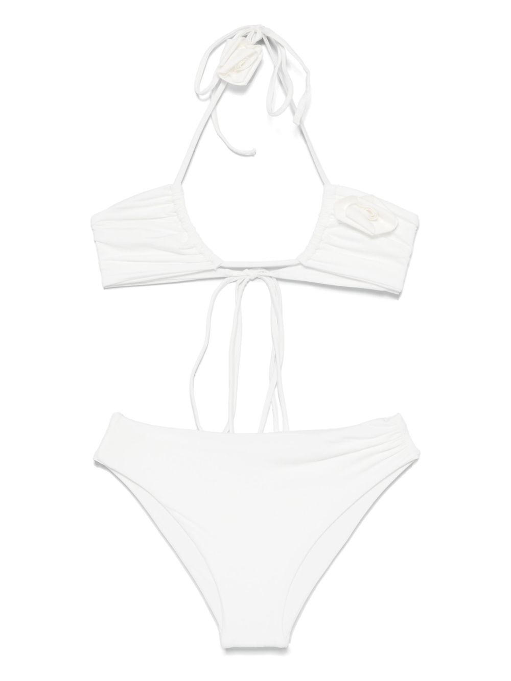 Quero bikini Highlights - White - Self-tie fastening - Full lining - High-waisted bottoms - Be mindful to try on swimwear over your own garments. Imported Composition Polyamide 78%, Spandex/Elastane 22% SIZE & FIT Measurement LENGTH 11.02 in(28 cm) WAIST 25.19 in(64 cm) BUST 57.08 in(145 cm) Washing instructions Hand Wash