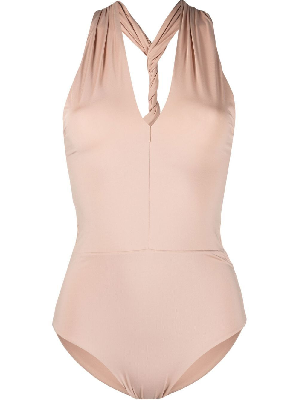 twisted knot-detail swimsuit light beige stretch-design twist detailing rear tie fastening sleeveless Be mindful to try on swimwear over your own garments. Imported Composition Polyamide 78%, Spandex/Elastane 22% Washing instructions Hand Wash