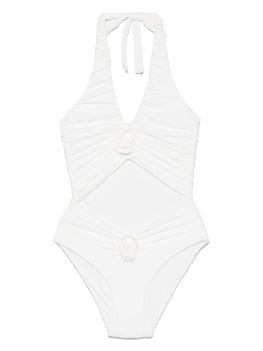 Zaguan swimsuit Highlights - White - Halterneck tie fastening - Floral applique - Cut-out detailing - Be mindful to try on swimwear over your own garments. Imported Composition Polyamide 78%, Elastane 22% Washing instructions Hand Wash