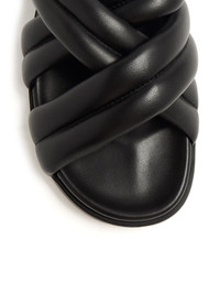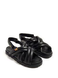 crossover padded leather sandals Highlights - Black - Calf leather - Padded design - Slingback strap - Logo plaque - Round open toe - Moulded footbed - Flat rubber sole Made in Italy Composition Leather 100%