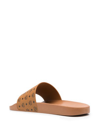 logo-print single-strap slides camel brown/jet black grained texture all-over logo print open toe open back single toe strap flat rubber sole Imported Composition Sole: Rubber 100% Lining: Rubber 100% Outer: Rubber 100% SIZE & FIT Measurement HEEL 0.78 in(2 cm) Sole height 0.39 in(1 cm)