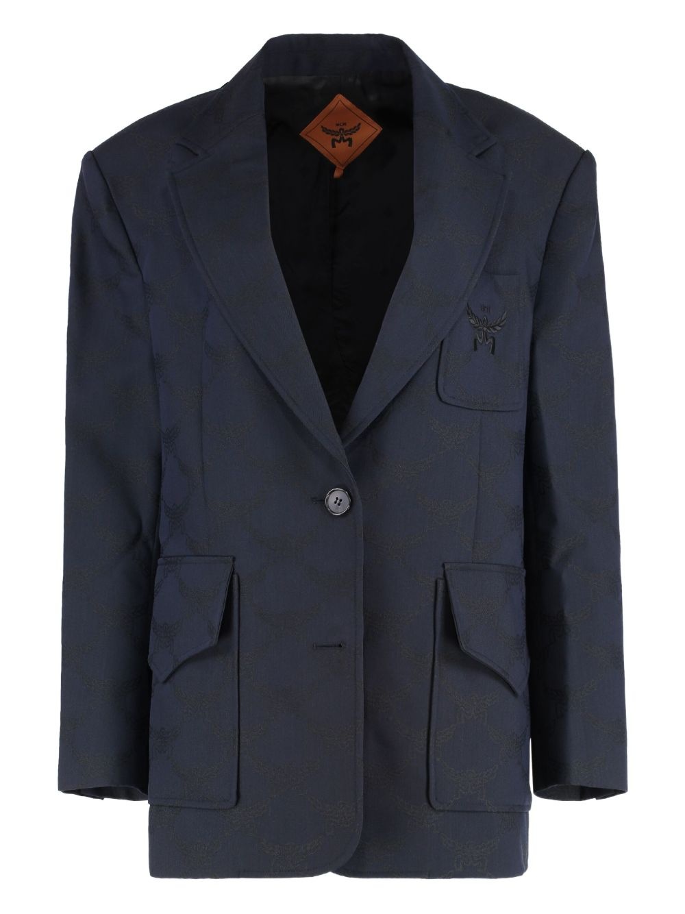 single-breasted blazer Highlights - Navy blue - Two front flap pockets - Chest patch pocket - Monogram print - Notched lapel Imported Composition Virgin Wool 60%, Polyester 40% Washing instructions Read Manufacturer Guidelines