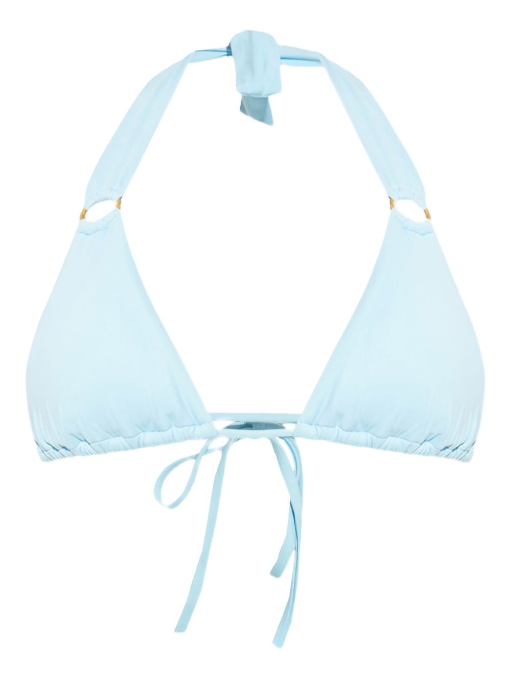Caracas bikini top Highlights - Sky blue - Rear tie fastening - Triangle cup - Gold-tone hardware - Be mindful to try on swimwear over your own garments. Made in Italy Composition Polyamide 86%, Elastane 14% Washing instructions Read Manufacturer Guidelines