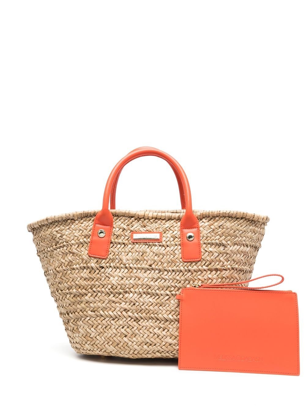 Corsica leather tote bag pumpkin orange calf leather/straw gold-tone logo plaque press-stud fastening two rolled top handles removable pouch Imported Composition Leather 100% SIZE & FIT Model measurements Height 5 ft 11 in(1.8 m) Bust/Chest 31.49 in(80 cm) Hips 35.43 in(90 cm) Waist 24.4 in(62 cm) Measurement DEPTH 7.28 in(18.5 cm) HANDLE 5.9 in(15 cm) HEIGHT 10.62 in(27 cm) WIDTH 19.68 in(50 cm)