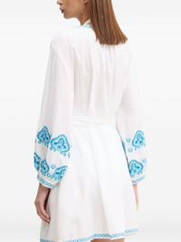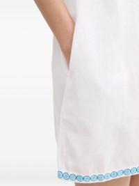 embroidered button-front beach dress Highlights - White - Light-blue embroidery - Front button fastening - Round neck - Embroidered cuffs Imported Composition Cotton 80%, Linen/Flax 20% Washing instructions Read Manufacturer Guidelines