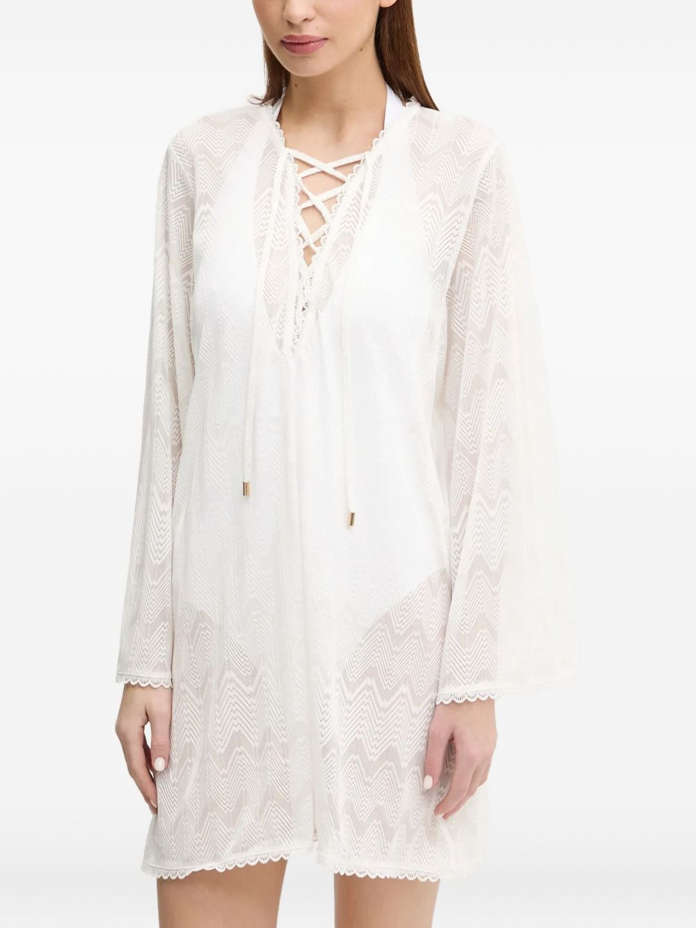 lace-up beachwear Highlights - White - Chevron pattern - Lace-up neckline - Long sleeves Imported Composition Polyester 100% Washing instructions Read Manufacturer Guidelines