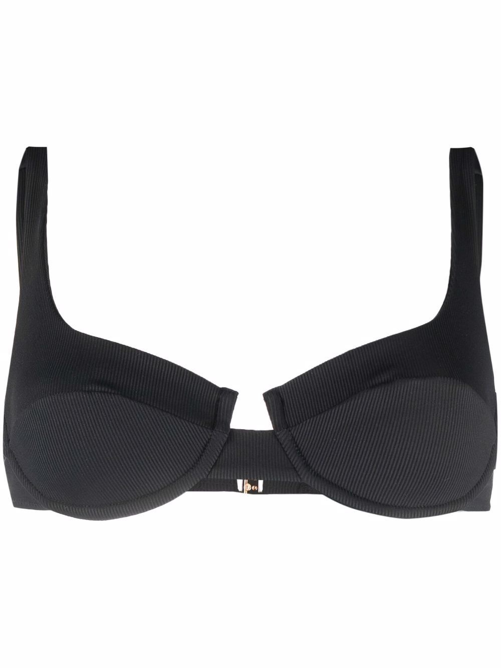 Montreal ribbed bikini top Highlights - Black - Stretch-design - Fine ribbed - Adjustable spaghetti straps - Rear clasp fastening - Be mindful to try on swimwear over your own garments. Made in Italy Composition Polyamide 86%, Spandex/Elastane 14% Washing instructions Hand Wash