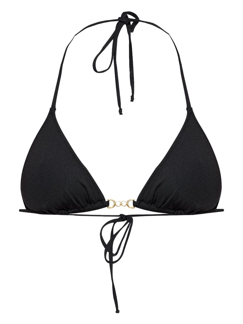 Monza bikini top Highlights - Black - Self-tie fastening - Triangle cup - Chain-link detailing - Be mindful to try on swimwear over your own garments. Made in Italy Composition Polyamide 86%, Elastane 14% Washing instructions Read Manufacturer Guidelines